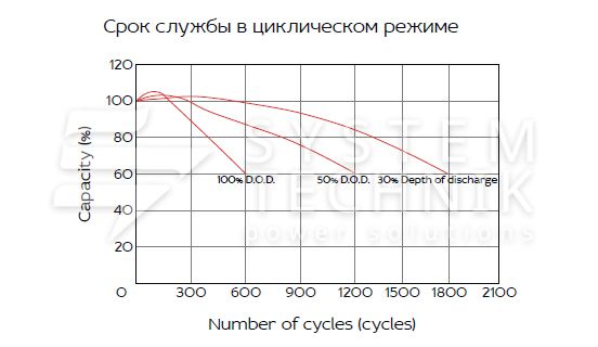 - Срок хранения без подзаряда: 6 мес. при 25°C;