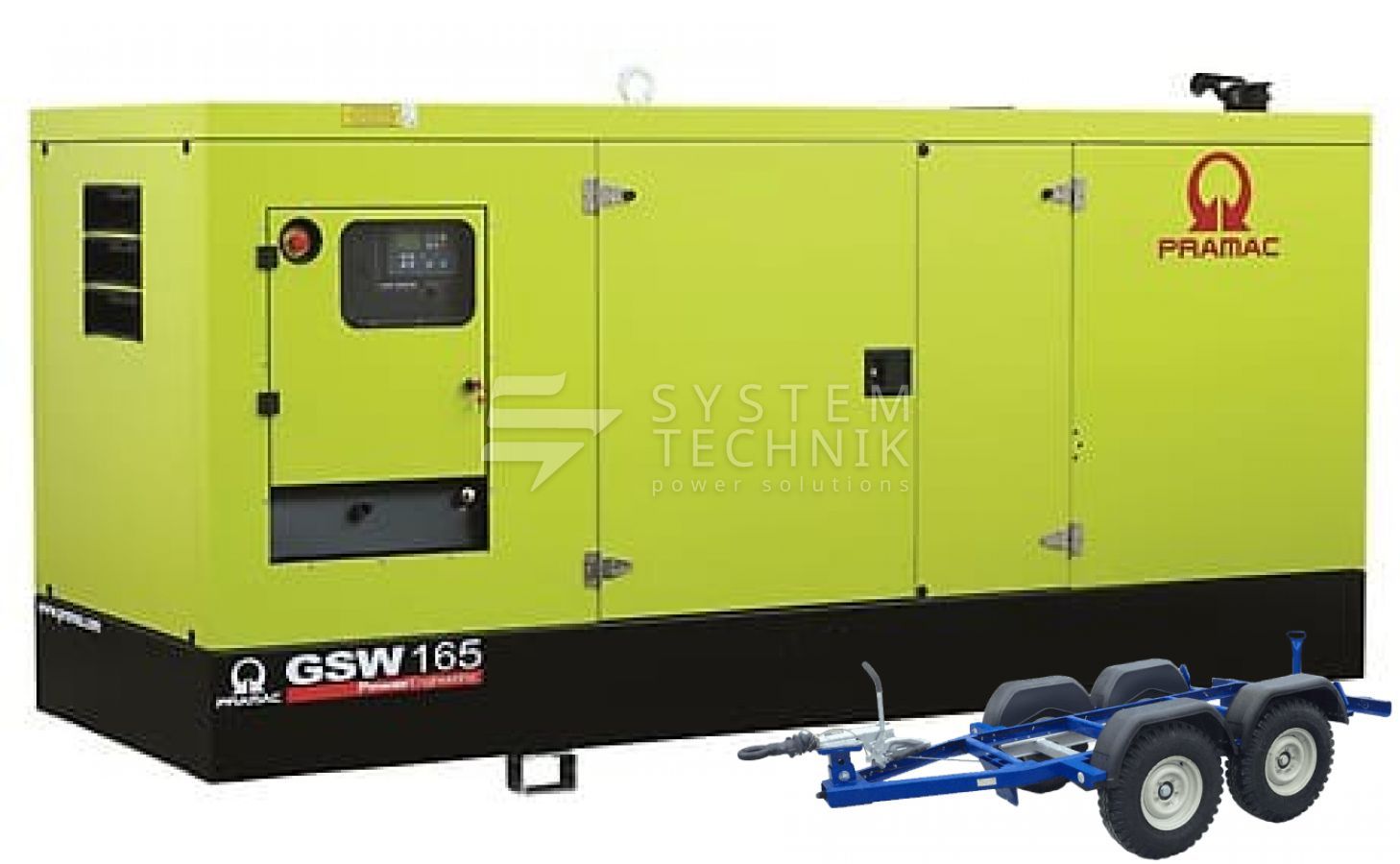 - Дизельный генератор Pramac GSW 165 P 400V В кожухе на прицепе
