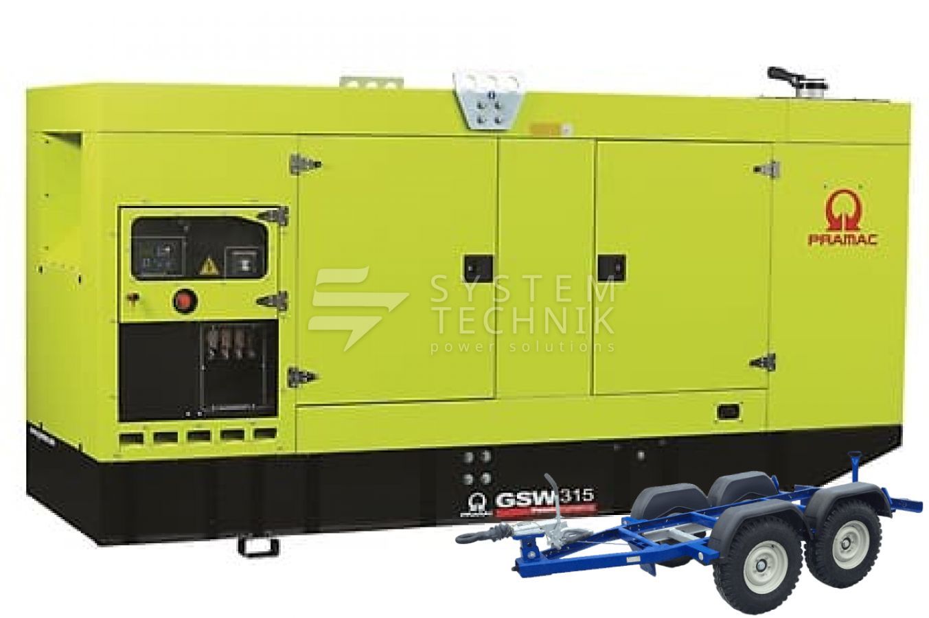 - Дизельный генератор Pramac GSW 315 P 380V В кожухе на прицепе