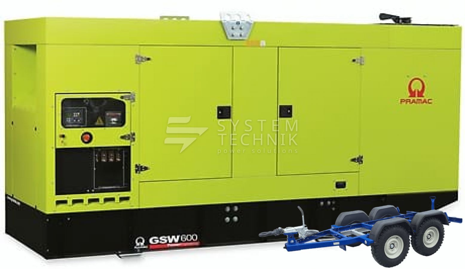 - Дизельный генератор Pramac GSW 600 V 440V В кожухе на прицепе