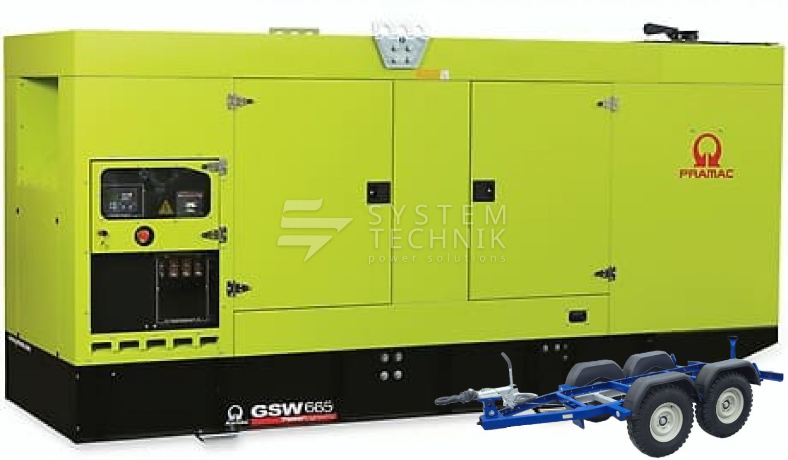 - Дизельный генератор Pramac GSW 665 M 400V В кожухе на прицепе